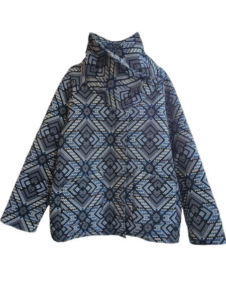 Nanna jakken med en stor flot quiltet krave som kan knappes op og ned og med varmt quiltet foer og lynlås.
